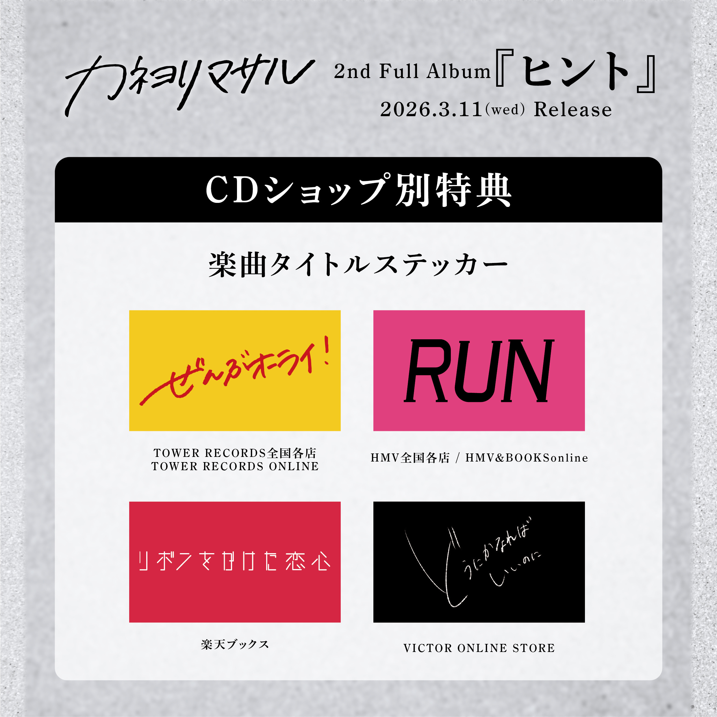 2nd Full Album「ヒント」VICTOR ONLINE STORE限定セット付属!